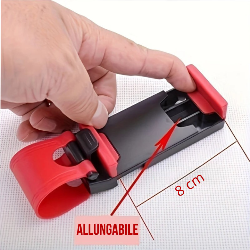 La clip regolabile si adatta facilmente alla maggior parte dei volanti e degli smartphone, assicurando compatibilità universale. L’installazione è semplice e veloce, senza l’uso di attrezzi o ventose: si monta in pochi secondi e rimane ben saldo anche durante gli spostamenti.
