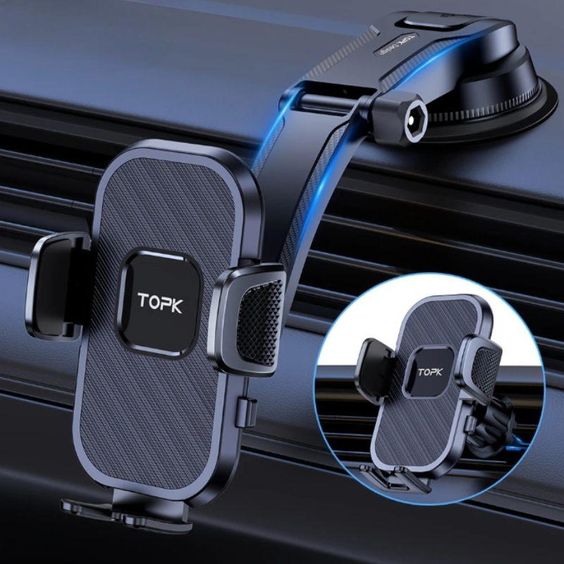 Il supporto per telefono da auto TOPK 2 in 1 è la soluzione perfetta per chi cerca versatilità, stabilità e compatibilità. Grazie al suo design aggiornato, può essere montato facilmente sia sul cruscotto che sulla bocchetta d’aria, adattandosi alle tue preferenze e alla configurazione della tua auto.